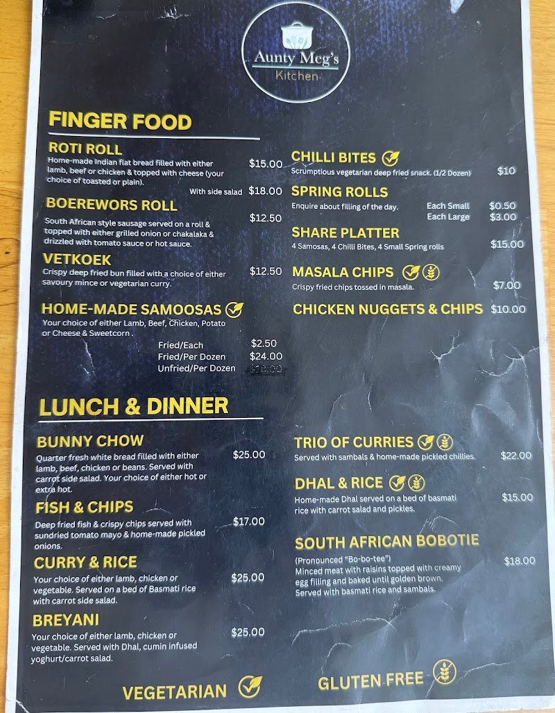 Aunty Meg’s Kitchen is truly a hidden gem! I visited as part of the African Food Safari organised by Masoka Village in Adelaide, and I was not disappointed. The food is an authentic taste of South Africa—especially Durban cuisine—flavourful, comforting, and made with so much love. The atmosphere is charming and relaxed, perfect for summer evenings under the stars, and they even have heaters to keep things cosy during the colder months. The cooks are warm, friendly, and genuinely welcoming—it really does feel like dining at your favourite aunty’s kitchen! I honestly have nothing negative to say about this beautiful place. Aunty Meg’s Kitchen is a must-visit for anyone wanting to experience authentic South African food and heartfelt hospitality.